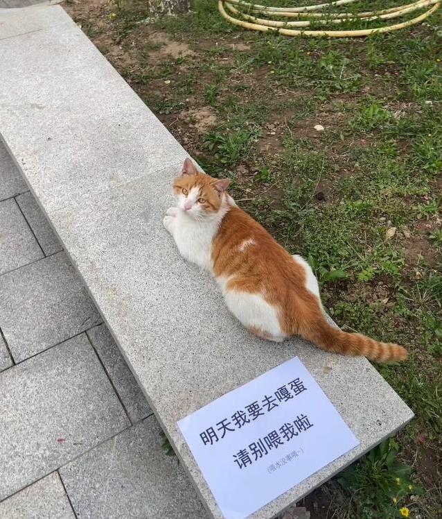 这只复旦的猫咪,估计也在心里犯嘀咕:咋最近没人给我好吃的了?它也不知道告示上写啥,只知道盯着食物没用。这场景让人既好笑又有点心疼:猫咪多馋啊,可为了它们健康,同学们得狠下心。这些告示,就像给猫咪的“健康指南”,可惜猫咪们一个字也看不懂。